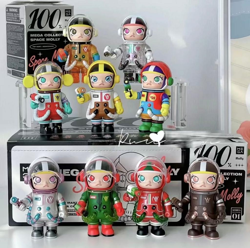 【SG Supplier】*Ready Stock* Mega Collection 100% Space Molly 9 + 1 (Hidden Character) Anniversary Blind Box Bubble Mart + 10 Transparent Casing