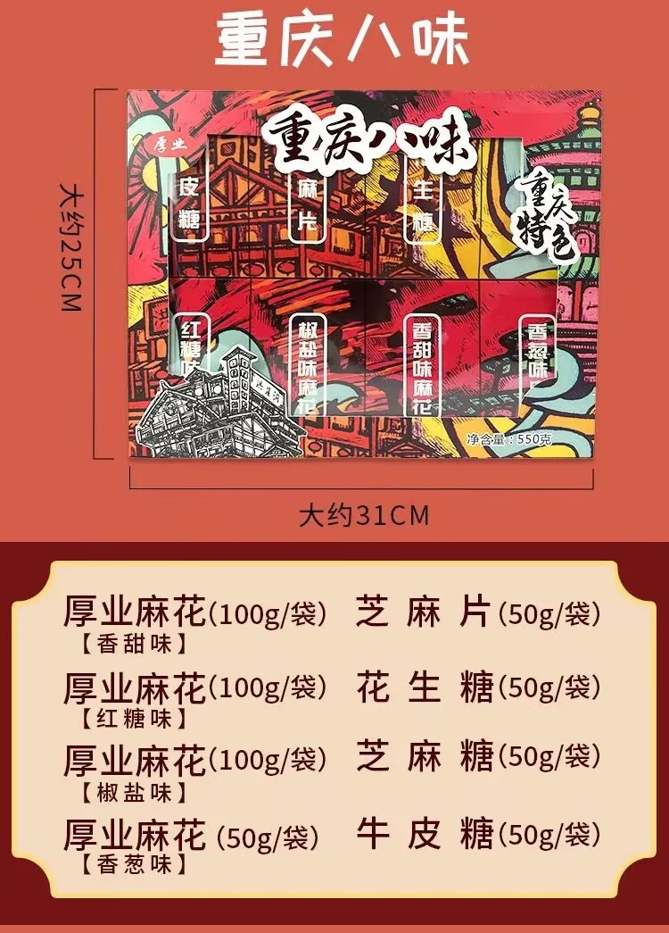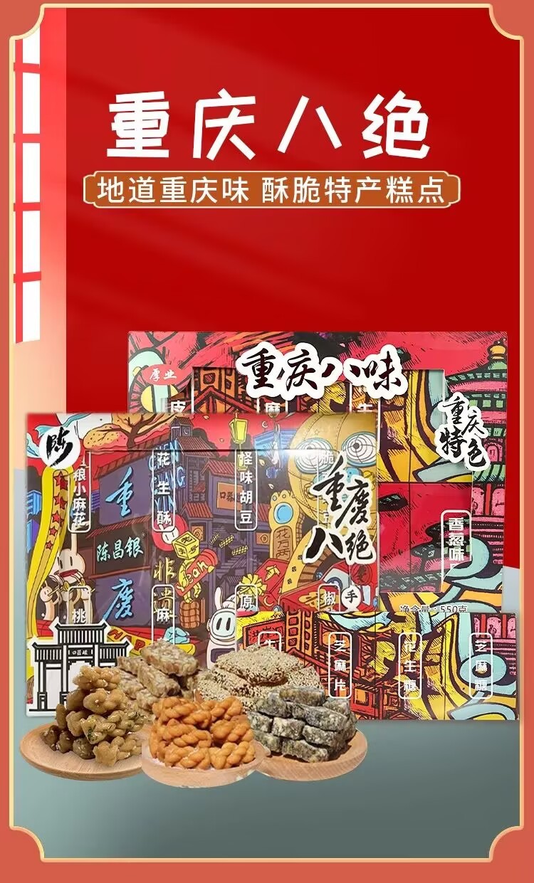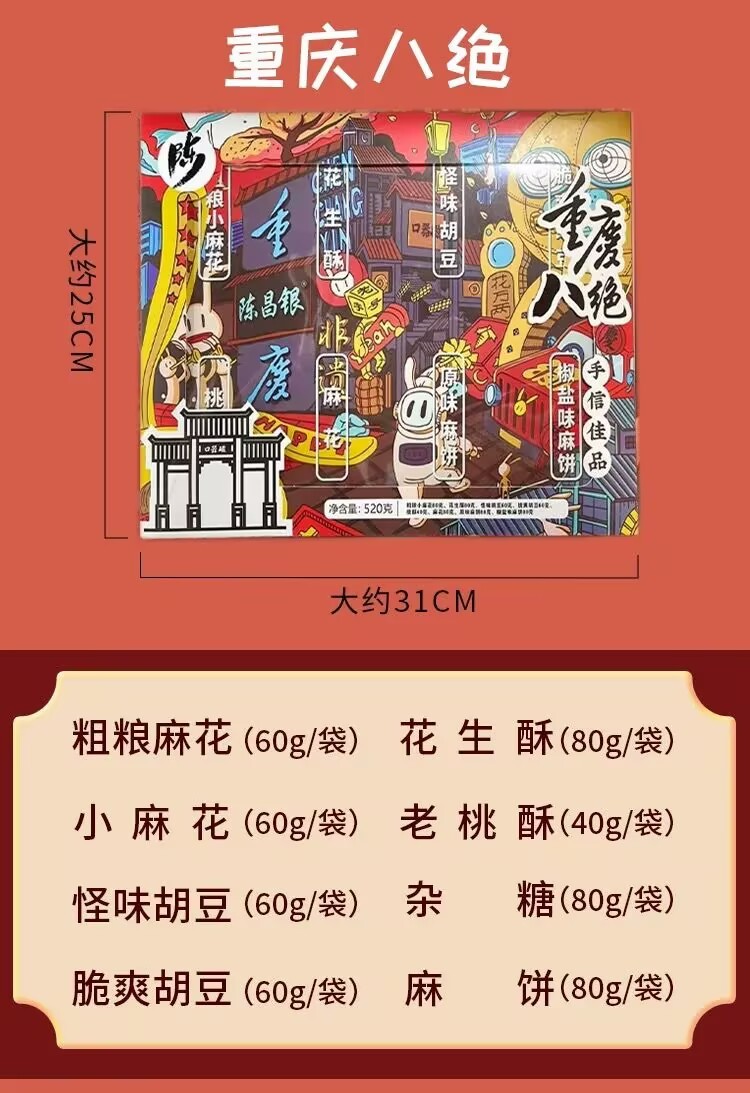 Chongqing specialty snacks eight unique gift box Ciqikou Chen Changyin dough twists 520g spree snacks combination gift