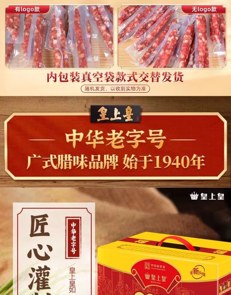 Emperor Huang Ruyiqifen thin sausage 1000g family gift box Cantonese sausage
