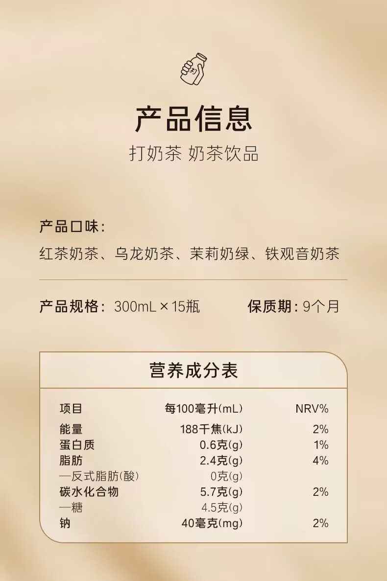 Nongfu Spring low-sugar Tieguanyin milk tea 300ml*15 bottles