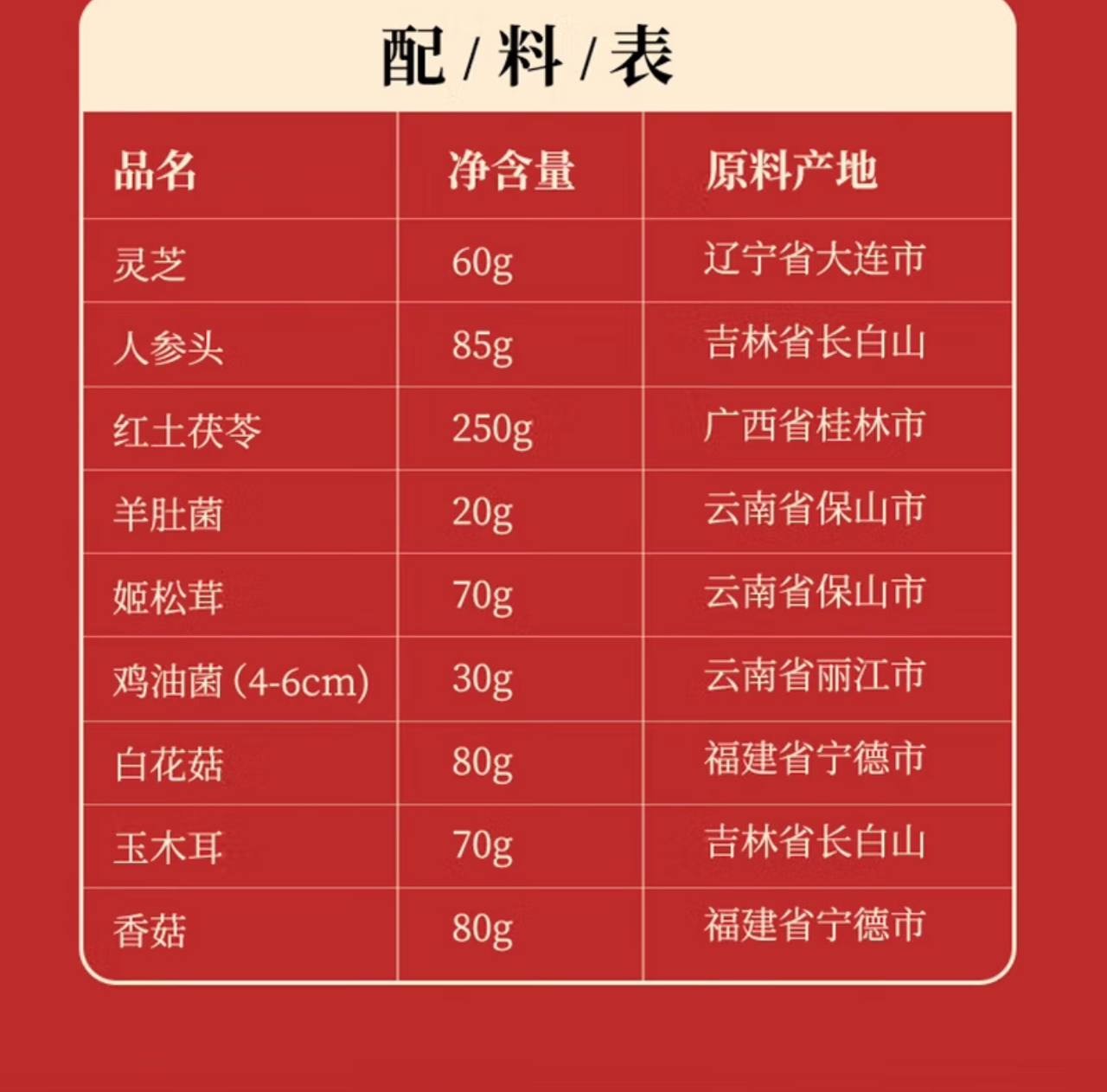 Zhenxi Mountain Mushroom Gift Box Double Door Ganoderma Lucidum Ginseng Dry Goods 9 Pieces 745g Holiday Gift Box for Elders