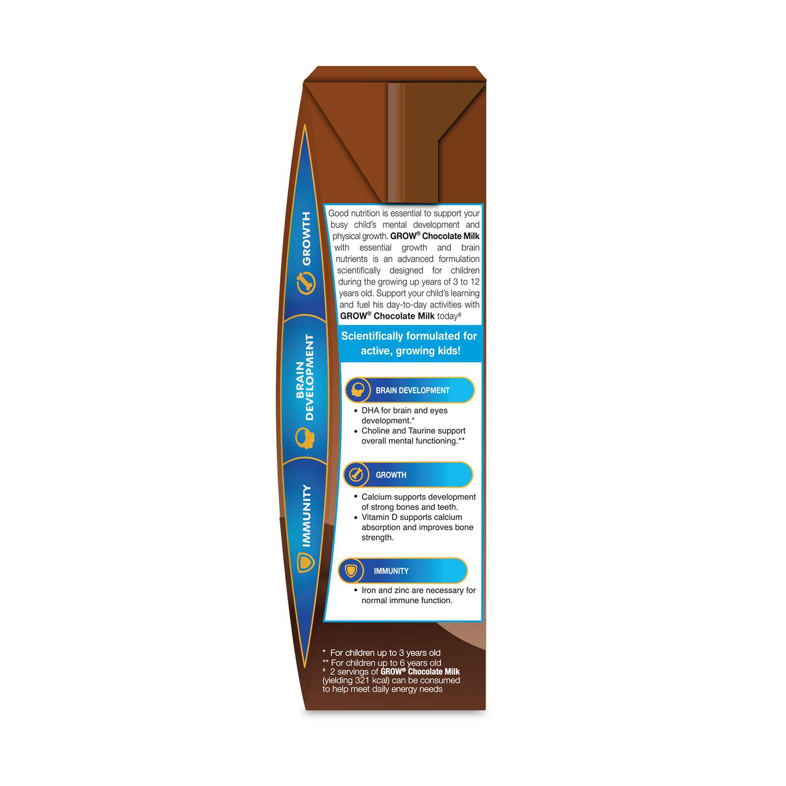 [Bundle of 3] GROW Growing Up Milk for Kids - Ready-To-Drink Chocolate (3 - 12 years) - 4x180ml