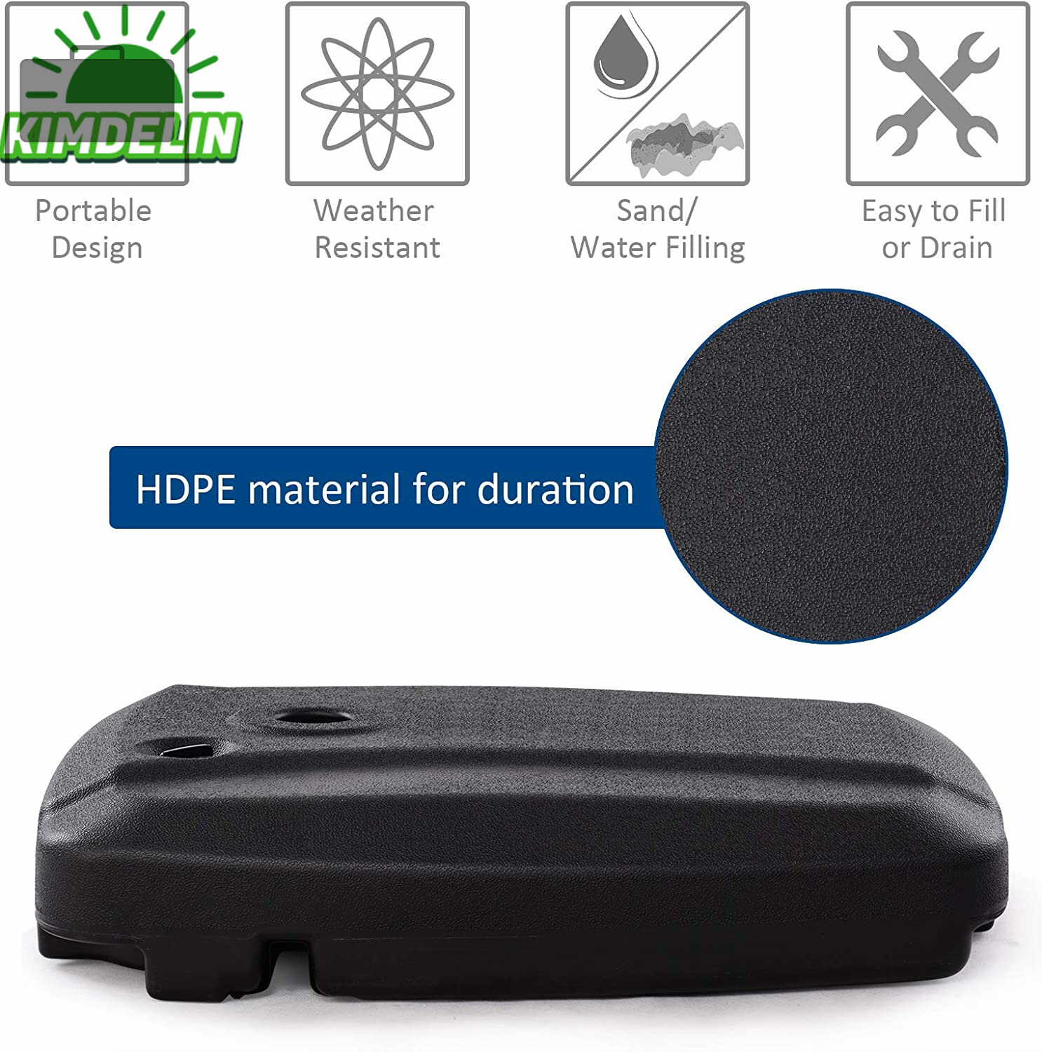 1、Durable Design: The parasol stand features the flexibility, antifreeze and low temperature resistance.2、Low Temperature Resistance: The parasol stand features slow oxidation rate, low temperature resistance, stable physical properties.3、Abrasion Resistance: The parasol stand features enhanced water filled hole, excellent plastic material, not easy to abrase.4、Smooth Design: The parasol stand features the smooth and tearing-resistant excellent materials, and it is made of excellent materials, so the hard objects are not easy to damage it.5、High Temperature Resistance: The parasol stand features the high temperature resistance and long-term sun resistance to be not easy to damage, and it features the anti-oxidation materials, long service life.