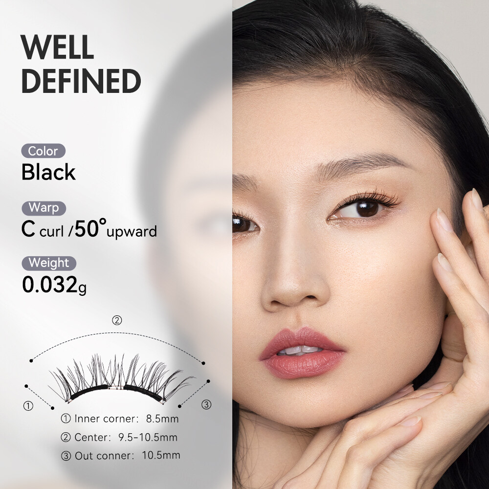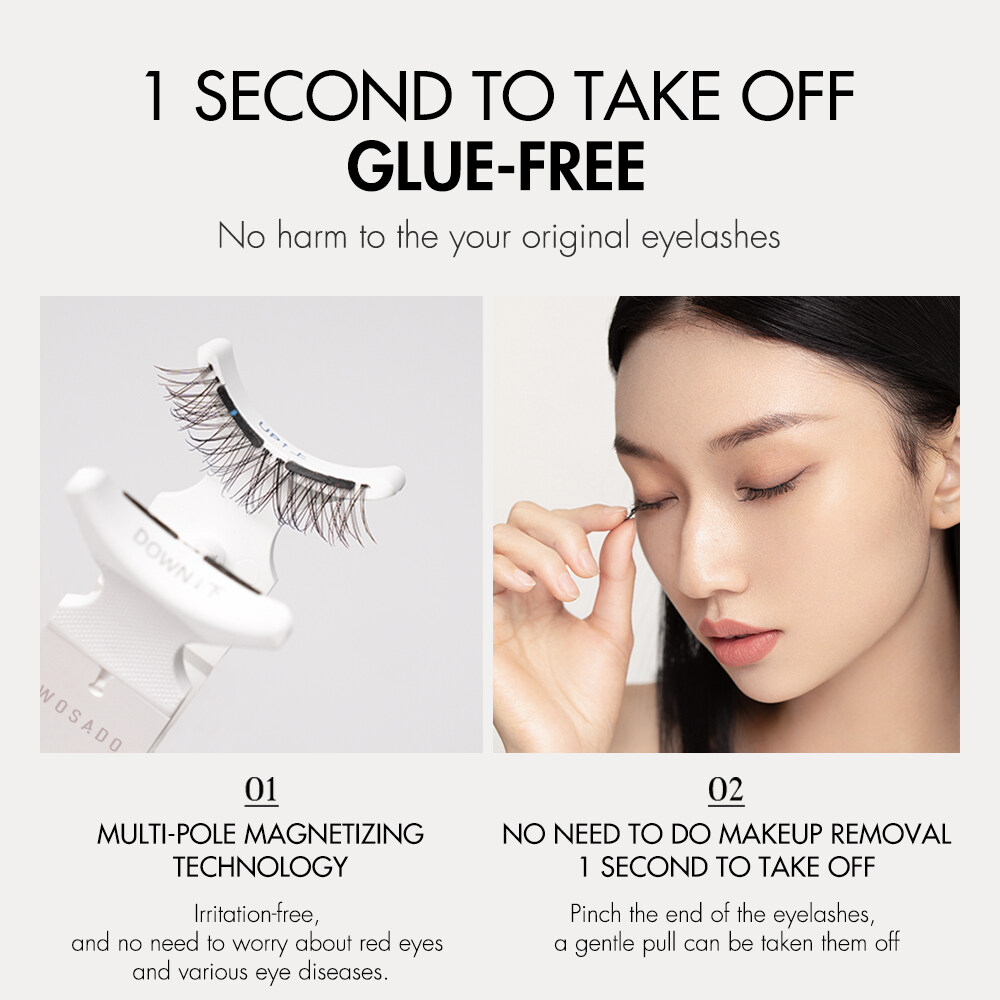 Thank you for choosing WOSADO!A new brand that advocates "Technology and Efficiency" in beauty industryWe always think that the "fast pace" brought by technology is everywhereBut in the daily makeup routine, the tedious steps still take up a lot of our timeHolding the concept of efficiency, we integrate technology into makeup beautyExclusive “R-SLM" technologyThe perfect balance between sophistication and timeMake makeup less complicated and more efficientFeatures:Well definedDescriptions:Suitable for light makeup.HOW TO USE:1.First lift your eyelash clip and comb it neatly.2.Confirm the best position to wear eyelash (about 3-5mm away from the inner eye angle).3.Understanding the blue and white spots on the smooth surface of eyelash magnetic stripe is a position tip.Tips:1. Find out the location of the blue and white spots, and dot the eyelashes at the same location, by which the blue spot is the upper piece and the white spot is the lower piece of the same eye.2.The end of the blue and white dot is the end of the eye.4.Put the upper and lower eyelashes on the auxiliary clip correctly, and put the soft magneto-optical sliding surface with blue spot downward on the “UP↑”side of the auxiliary clip, and put the soft magneto-optical sliding surface with white spot downward on the “DOWN↓side” of the auxiliary clip.5.The correct position is to put the top and bottom eyelash tip inward and upward towards the auxiliary clip.6.The auxiliary clip is close to the root of eyelid eyelash, and the position is fixed.7.Lift the auxiliary clip, gently press the eyelid, keep the clip in normal straight line and arc, and lift up 45°angle, slowly up fit.8.Complete the wear.Product InformationColor: BlackWarp: C curl /50°upwardWidth: 21.5mmFalsies length: inner corner 7.5mm, center 8.5-9.5mm, out conner 10.5mmAbout this item:1.Enlarging your eyes just takes 3 seconds. Easier to learn than adhesive eyelash, easy to wear after skilled. An excellent makeup tool for both beginners and professionals. Guaranteed to save your makeup time2.No need to do makeup removal. 1 second to take off, pinch the end of the eyelashes, a gentle pull can be taken them off3.Glue-free, no harm to the your original eyelashes, multi-pole magnetizing technology, Irritation-free, and no need to worry about red eyes and various eye diseases.4.Eyelashes are made of DuPont material. The premium synthetic fibers that result in luscious eyelashes. It is as light and comfortable as real eyelashes, soft and natural. This will not irritate your eyes or damage your natural eyelashes.5.Affordable and reuseable. As long as you keep them properly, the product can be used for about 90-180 days. If your frequency is about 1-2 times a day, you just spend less than 1RM a day then guaranteed a pair of perfect eyes.6.Permanent magnets, if used infrequently and well protected, can be used for more than 10 years.7. Eyelashes are exquisitely handmade craft.