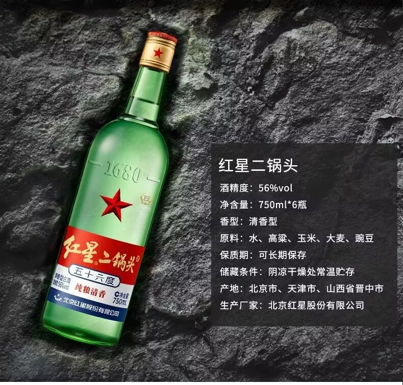 Beijing Hongxing Erguotou Big Green Bottle 56-degree Fen-flavor Liquor Brewing High Ration Liquor with Pure Grain