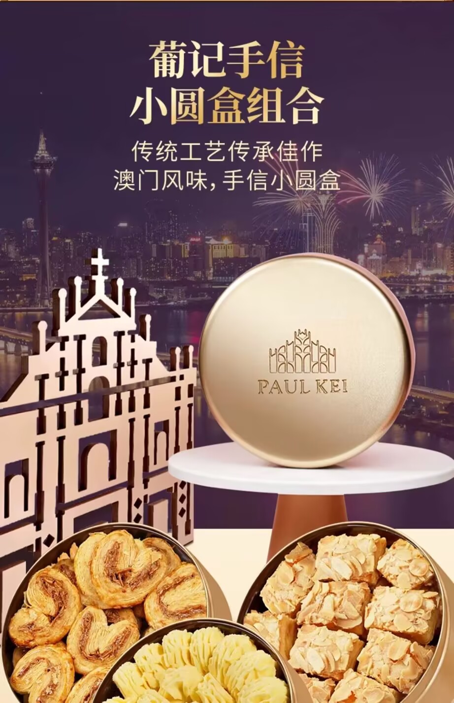 Macao Portuguese small gold box handwritten letter *3 boxes of Melaleuca Butterfly Butter Little Flower Cookies Zero Food Gift Box