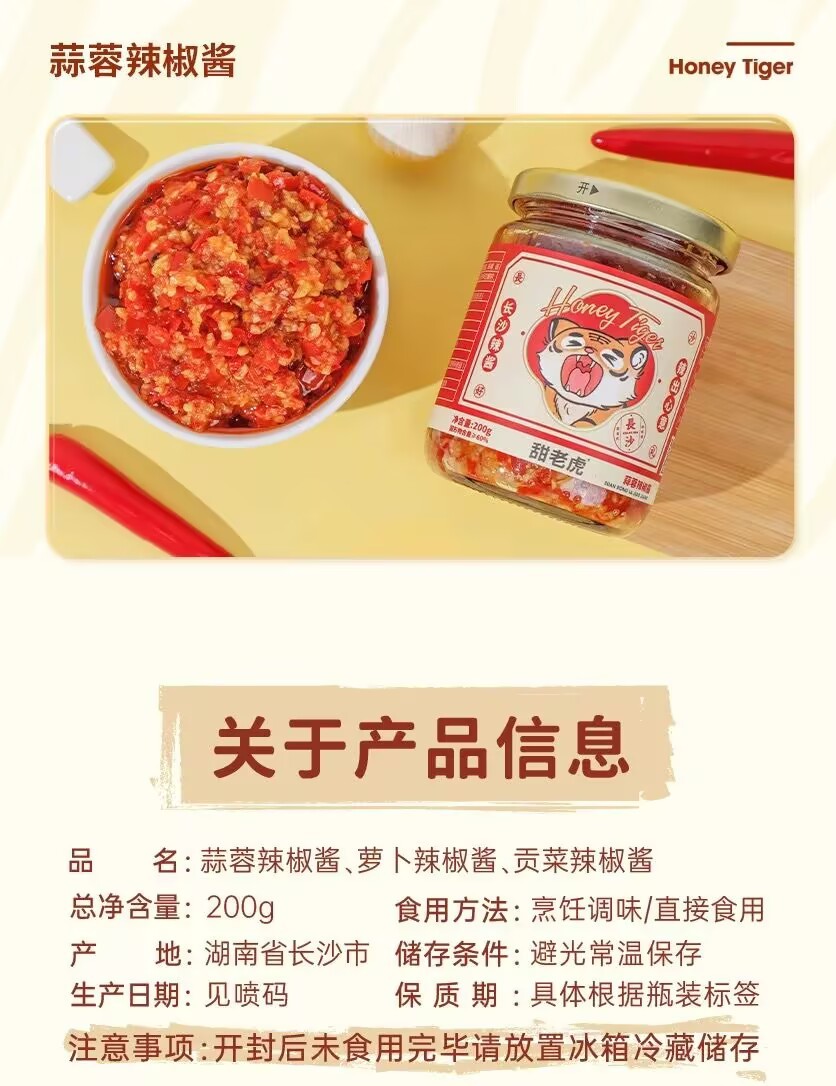 Sweet tiger Chili sauce Hunan specialty garlic Chili sauce bibimbap noodles seasoning sauce tribute radish next meal Chili sauce