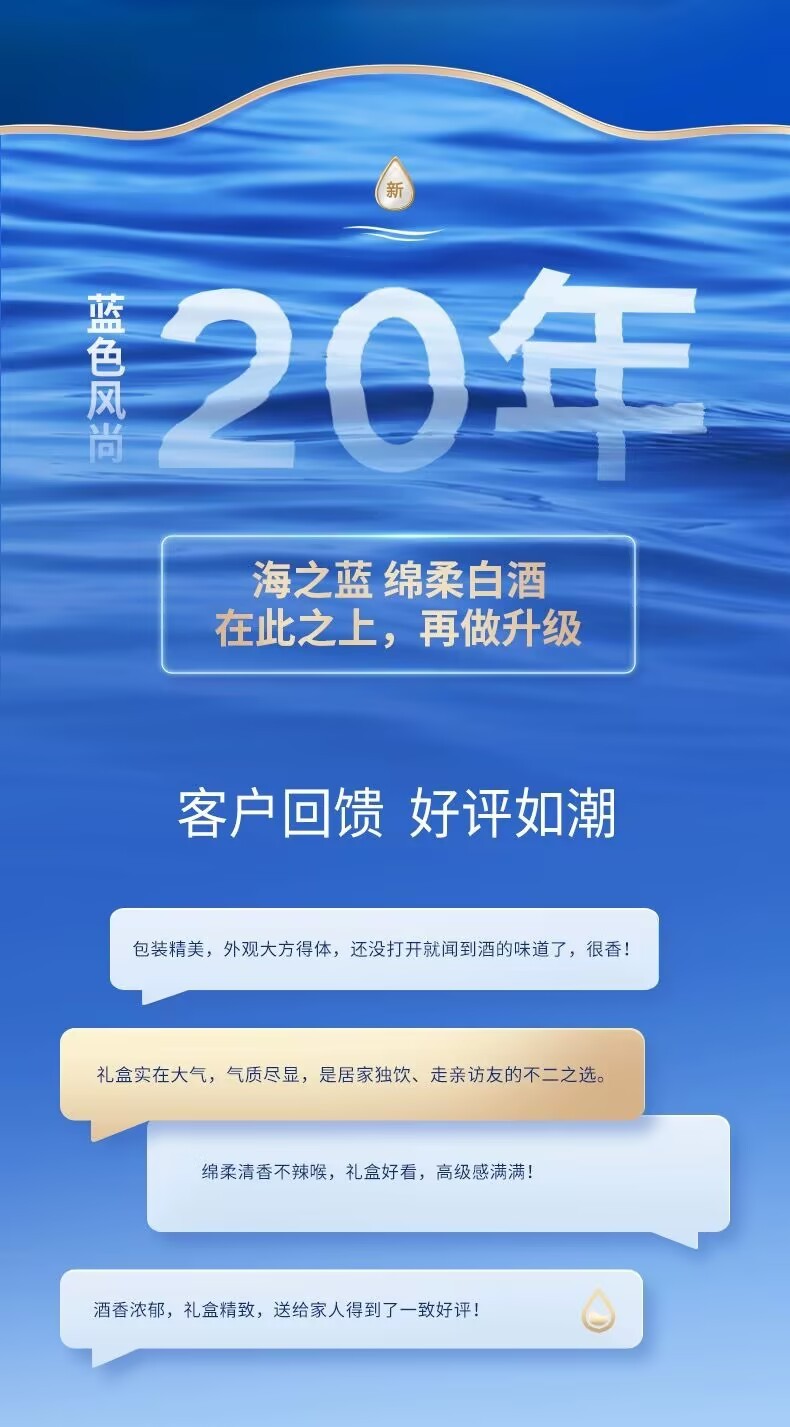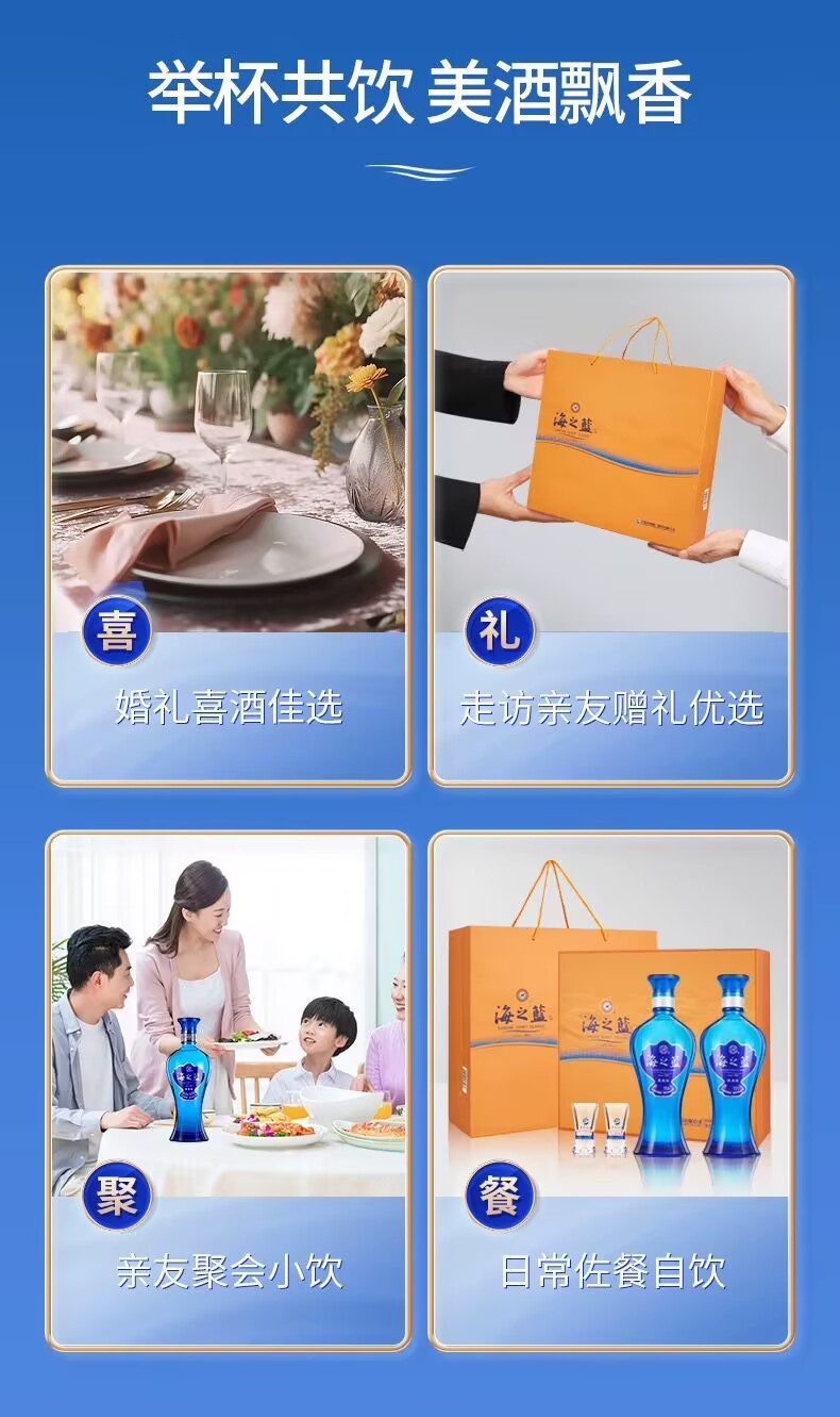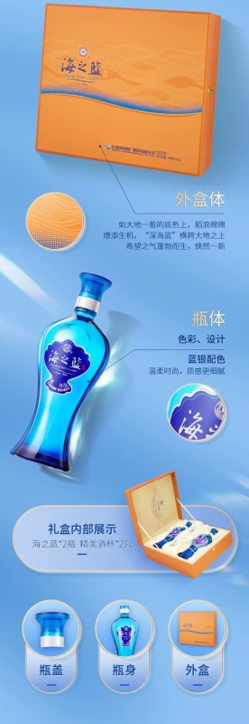 Yanghe Sea Blue 52-degree gift box 480ml*2 bottles gift box soft white wine