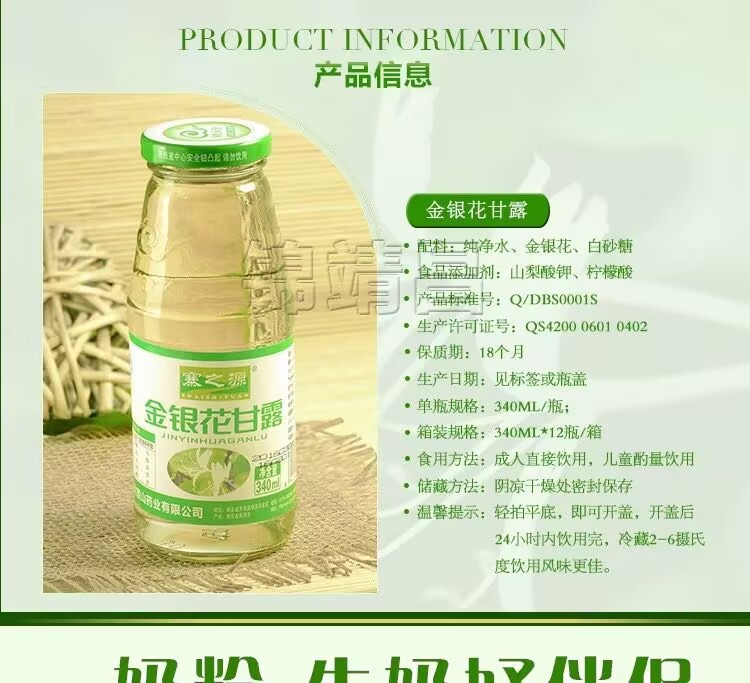Zhai Zhiyuan Honeysuckle Honeydew Honeysuckle Dew Drink 36*340ml full case